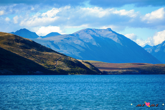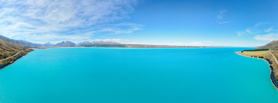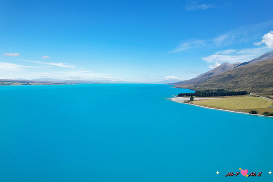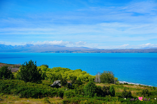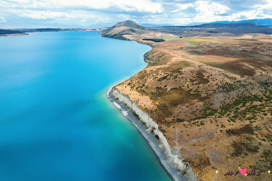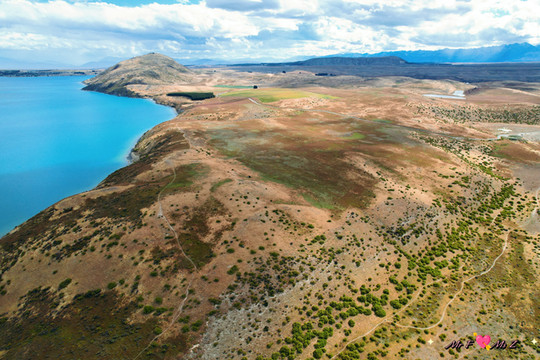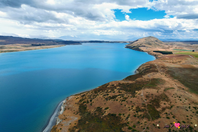 ★亮点:蒂卡普湖中段全景,莫图阿里基岛,草地和岩石湖岸线;