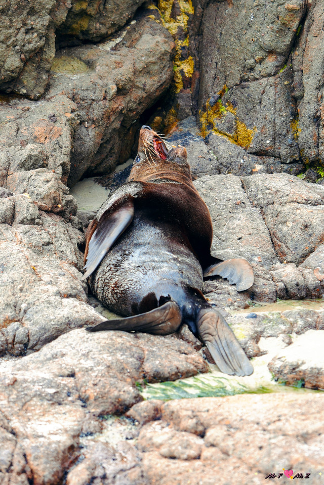 从奥瓦卡到杰克湾的路程并不远,但天气却有些阴沉,海风呼啸,海浪拍打着岸边的礁石,发出阵阵轰鸣。抵达杰克湾时,海滩上空无一人,只有风声和海浪声交织在一起,显得格外空寂。我们沿着步道走向海滩,目光在嶙峋的岩石和翻滚的浪花间搜寻,却始终没有发现企鹅的踪影。