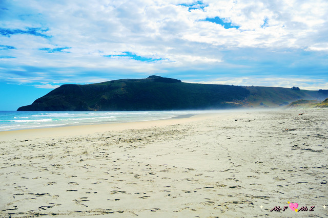 正当我们有些失望,准备离开时,一对正在本地度假的夫妇走了过来。他们热情地告诉我们,黄眼企鹅通常会在傍晚时分从海里返回陆地,但由于天气不好,风浪太大,企鹅可能会选择在远离海滩的岛上休息。他们还贴心地为我们指明了远处的一个小岛,说那里是企鹅的栖息地之一。