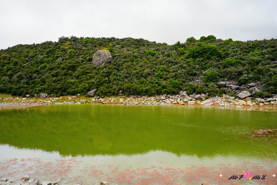 接下来的行程有两种选择,一是走下山坡沿湖岸前往另一个停车场;二是原路返回。本着不走回头路的原则,我们选择了前者。大概是上天被我们的诚意所感动,头顶的天空在云卷云舒间,开始慢慢放晴。