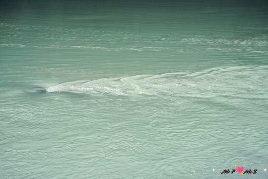 当晴空万里时,湖面犹如一块流动的琉璃,波光粼粼,熠熠生辉,那抹独特的奶蓝色如梦似幻,足以震撼每一个驻足的灵魂。