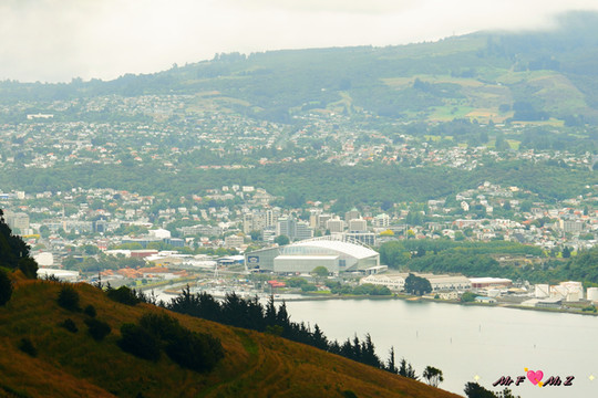 这种距离的登顶对我来说并不算太难。终点处有一面石壁,上面绘制了周边的风貌以及鲍德温大街的介绍。石壁前还贴心地为游客准备了一张长椅,累了可以在此稍作休息,既能恢复体力,又能俯瞰但尼丁的美景。