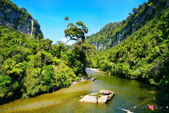 保罗拉雷河(Pororari River)沿岸的热带河流景观