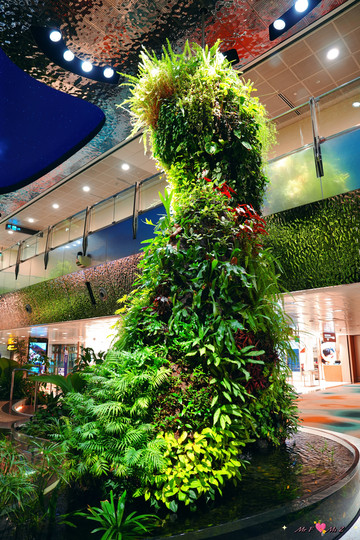 环绕其旁的“森林谷(Forest Valley)”,则是一片郁郁葱葱的室内绿洲,蜿蜒的步道穿梭其中,让旅客在繁忙的行程中也能寻得一份自然的宁静与生机。