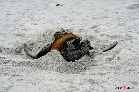 艾伦斯海滩(Allans Beach)上酣然入睡的的海狮
