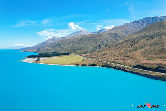 当冰川融水裹挟着岩粉注入普卡基湖(Lake Pukaki),独特的矿物质折射出令人屏息的冰川蓝调,晴空下的湖水宛若流动的蒂芙尼蓝宝石。