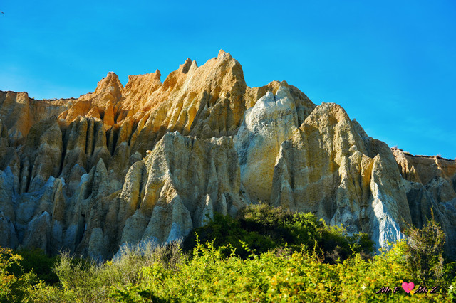 尽管陶土崖(Clay Cliffs)近60°的陡坡上碎石遍布,让人举步维艰,但当夕阳为嶙峋的石灰岩峭壁披上绚烂彩衣时,所有的艰辛都化作了值得。