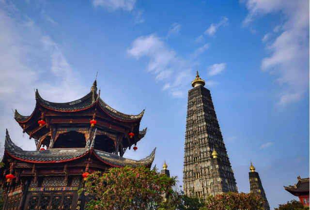 彭州闹市中竟隐藏着一座千年古刹,里面这个高81米舍利塔大有来头