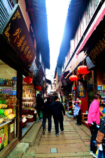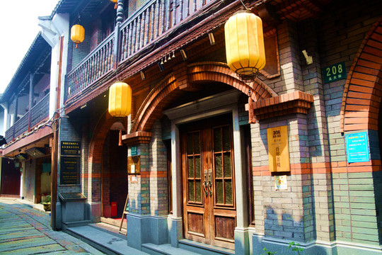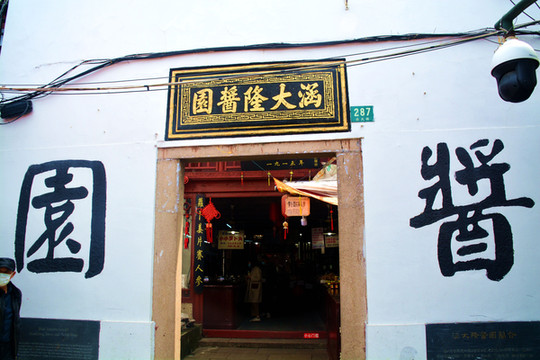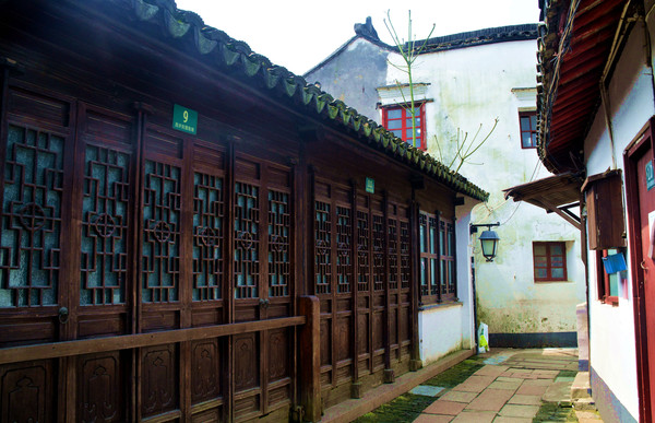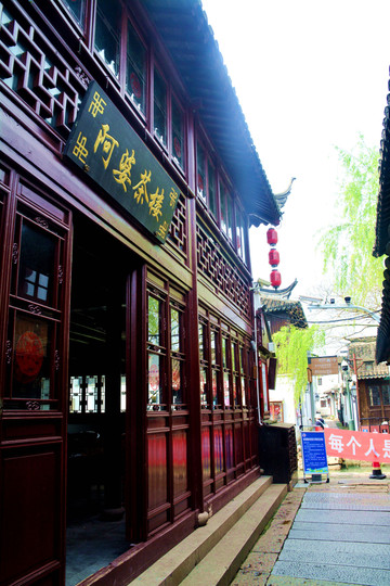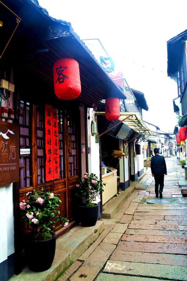 这是北大街,又称“一线街”,誉称“上海明清第一街”,距今已有四百多年历史,全长两里多路,其东起放生桥,西至美周弄的三百多米,是最富有代表性的明清建筑精华所在。这里,旧式民宅鳞次栉比,粉墙灰瓦错落有致,窄窄的街道曲径通幽,石板小路蜿蜒不断,老店名店两旁林立,展现了一幅古意盎然的江南水乡风情画卷。
