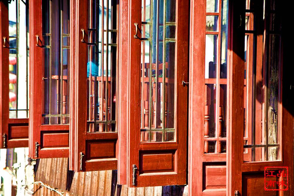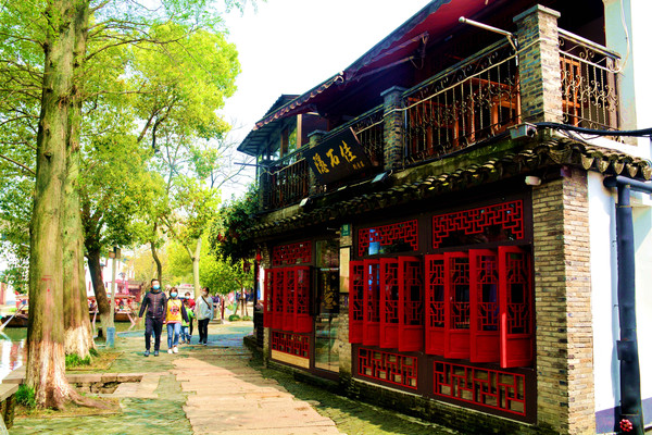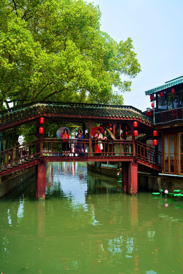 这是惠民桥。是古镇唯一的木结构小桥,也是最独特的木桥。因桥面建有木板栅,上盖砖瓦、翘角,故也称廊桥。使行人既可避风雨,又可遮烈日,这样既为民通行方便,又为民歇脚避风雨,故称惠民桥。登桥可欣赏两岸整齐的石驳和粉墙瓦的明清建筑,可看到人家凭水开窗,临水购物的动人江南水乡风情,构成一幅特有的水乡风情画。惠民桥于末以前因损坏、修建过,故后称新桥。五十年代初,因城隍庙前造了桥,惠民桥结构日久后也破烂不堪,故被拆。1996年,镇民陈署昌为开发古镇旅游业,认为惠民桥应复建,故个人捐款10万元,在原处建造了砖木结构的廊桥,桥墩是水泥,外包木,桥顶上是盖瓦翘角,这样与古镇建筑可融为一体,更为古镇旅游业增添了一道风景线。