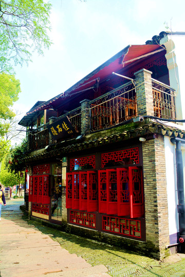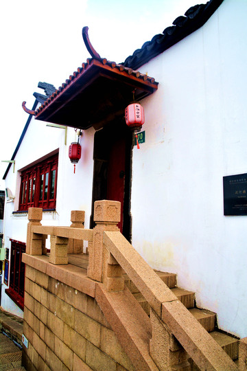 下面照片是圆津禅院,为清华阁十二景之一,建于元代至正年间,座落于漕港河边,寺内塑有辰州圣母像,故又名“娘娘庙”。现在的圆津禅院是之后重建的,门很小,但跨进门后却别有洞天。禅院虽然临街,但安静朴素、古色古香,院内结构小巧,佛像不多,但都精雕细刻,光彩耀目,庄严肃穆。院内后方的清华阁更是远负盛名,它不仅是名人文士珍藏书画之处,而且环境优美,登楼而上到达楼顶,远眺近望,能将珠溪胜景尽收眼底。禅院历史上为重要的文物储藏所,明清以来,许多文人雅士慕名纷纷前来,禅院成了明清时期文人聚会之所。可惜,院内许多珍贵文物,部分毁于战乱,部分为寺内不肖僧徒偷出变卖。至四十年代末期,珍品已经不多,后大部分为江苏省文管会接收,收藏于江苏省及苏州市博物馆,少数保存在青浦县博物馆。五十年代初,禅院被拆,现还保留有王昶所撰“重修清华阁记”、“振华长老塔铭记”,及沈光莹撰“重修大殿记”石碑,成为禅院遗留下来的仅有文物。