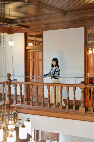 在百年历史温泉旅馆 观赏浪漫主义绘画