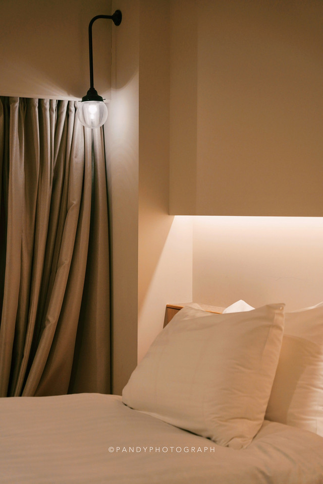 酒店的客房除了日式客房外,还有住在帐篷如同野营般的露台房,就是我这次居住的洋式客房。打 开阳 台的房门穿过日式庭院步道,就有搭好的帐篷和露营设备,而帐篷的背后是山林美景,让人不用辛苦地背着器材也能体验到野营的乐趣。