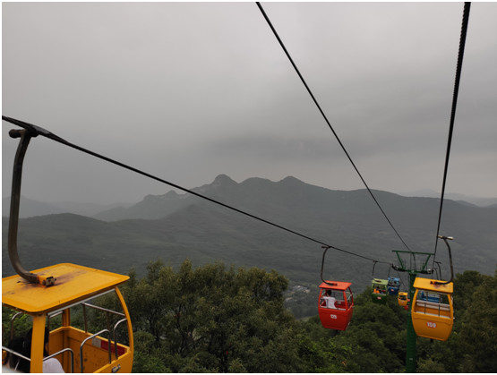 参观完少林寺,就直接往里走,已经下午5点10分了,看到一个宣传标语,不到三皇寨,不算到嵩山,所以直奔三皇寨索道,由于没有人工售票,只能网上购票,但是网上购票系统下午5点就关闭了,遗憾了好半天,但是没办法。不得已来到少室山索道(两个索道距离很近)