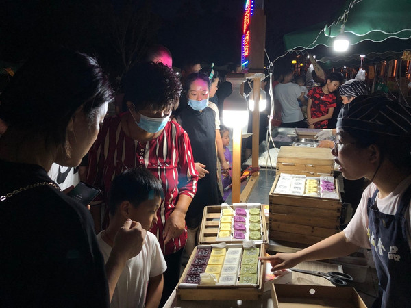 文创产品、农创产品、四季仙果、农副特产等刺激着市民游客的味蕾,也唤醒着上虞这座中国最佳休闲小城惬意的夜生活。风情街夜市以乡镇特色馆、农小二联盟馆、大通电商馆、集团文创馆、最美人物馆等16个场馆为基本依托,开辟了“非遗市集、美味市集、文创市集、四季仙果、文化记忆和特别展示”六大特色展区,“唐诗里的中秋”、“祝福祖国”、“孝满金秋”、“穿起秋味”等一个个应时应景主题在夜市中通过小型音乐会、实景诗歌朗诵、现场快闪、文化沙龙等形式得以呈现,让夜市的文化特色更具生命力。