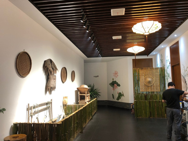 更有竹的仿古屋檐、竹背景墙、竹制茶杯点缀整个餐厅。