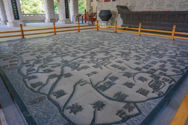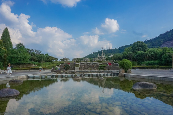 往山坡旁的游步道走,看到的是神州舜迹石刻艺术,这十八块各具特色的石雕生动地展示了舜帝的一生。
