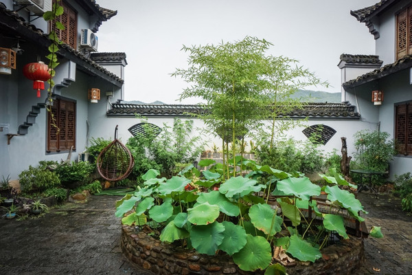 转过一个弯,一家家布置典雅的民宿跃然眼前。江南风格的院落,镂空花窗,盆栽数株,留得住一段悠悠时光。若是得空在此住上一晚,白日里赏着梯田花海,入夜后聆听虫鸣,惬意无比。