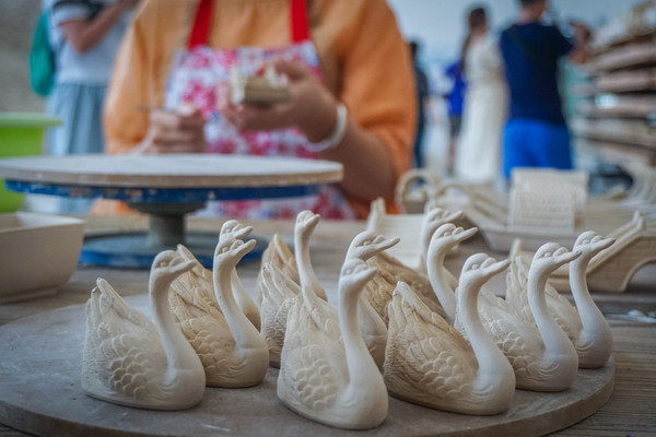 这里既可以参观,也可以动手,在这里有个教学点。小朋友们都来这里学习制作陶瓷陶艺。