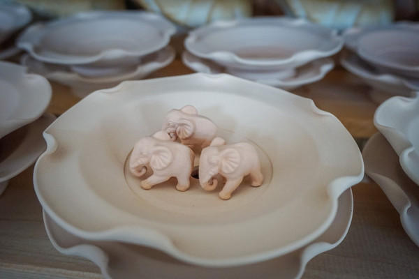 这些素胚 的小象也非常的有意思,他们会被做成放名片的架子上面的一个小饰物,这些做得相当的灵动。