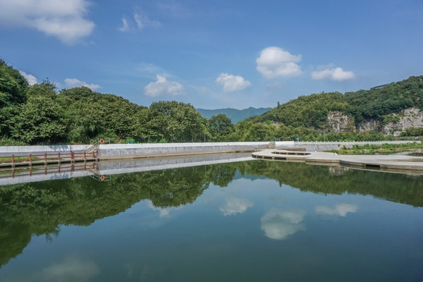 公园以凤凰山窑址、禁山窑址等上虞早期越窑重要考古发掘遗文化景观、传统聚落景观、整个考古遗址公园的核心区域。远远望去秀丽的群山倒映在清澈的水面上,这个友谊水库建于1983年。