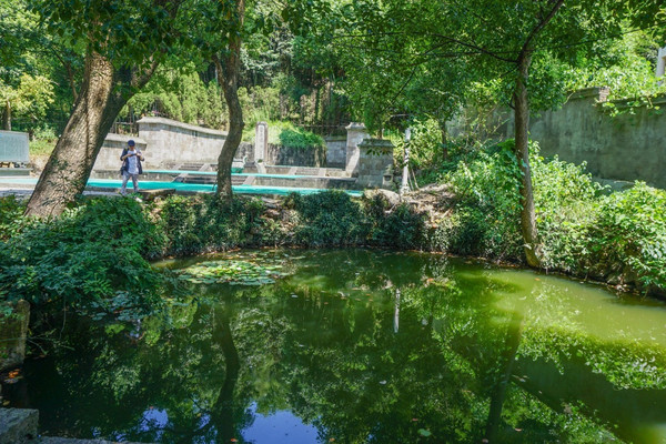 谢安墓风水也是特别的好,墓的前面就是一汪清澈的水潭。这就是始宁泉,位于谢安墓前,国庆寺大雄宝殿后,为一口山塘,塘四周古樟、麻枥遮日,边上有一石碑,上书“始宁泉”三个古朴的篆书大字。此泉似为旧日始宁别墅一景。