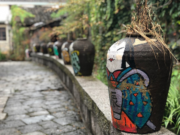 沿途寻见的酒坛,上面用颜料绘着十二生肖,让清幽的古村平添了几分趣意。