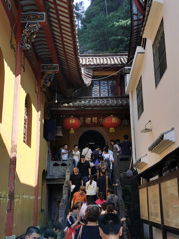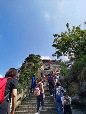 上天台途中,台阶老旧、坡度较陡,据说有1200级左右,大多数人步行,也有人三步一拜,有人坐轿