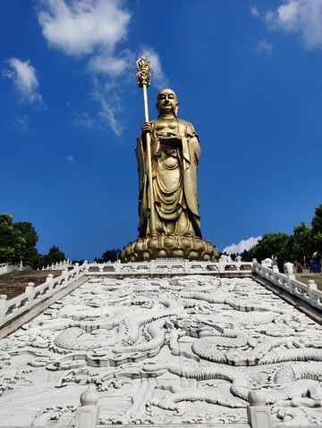 大愿地藏王菩萨圣像高99米,庄严神圣,身临其境有一种莲华一齐笑、人立宝光中的感觉。
