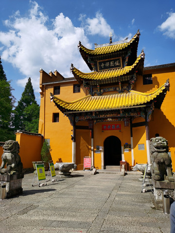 百岁宫下山步行道的尽头是祗园寺,祇园寺规模较大,与甘露寺、百岁宫和东岩禅林合称九华山四大禅林。