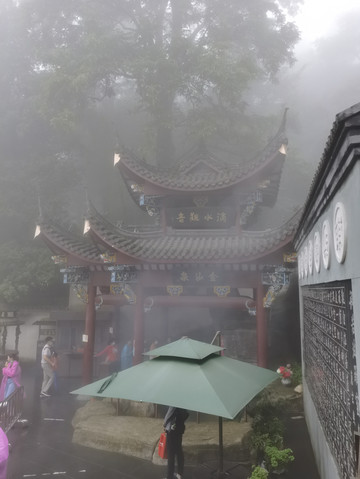 来到上禅堂后院,可以看到观音阁,其内供奉着九华山唯一一尊滴水观音,其观音像下有泉,名金沙泉。其泉清澈见底、金沙剔亮、四时不竭、如游龙出洞。入口则沁人心脾;擦洗则耳聪目明。其泉岩石上镌有“金沙泉”三个大字,相传为唐诗人李白手书。泉边有树,名曰-金钱树,为九华山三宝之一。