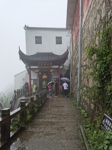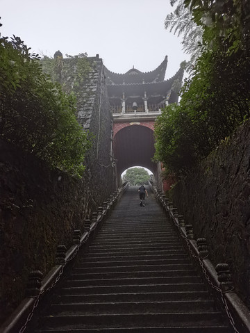 沿着山道往下走,雨渐渐的停了。呼吸着新鲜的空气,不知不觉走到了九华街。百岁宫海拔800多米,走起来不是很辛苦。