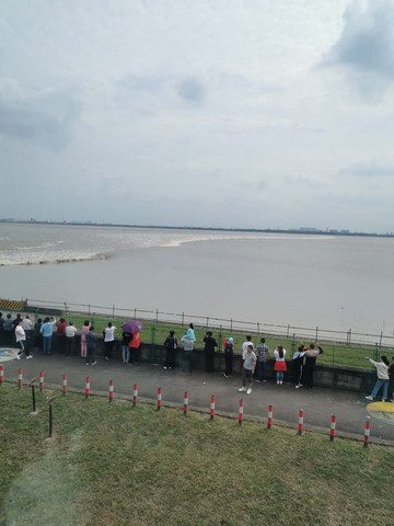 此行的大收获是认识了钱塘江,体验了观潮节的观潮活动。在堤岸上和那些孩子、狗狗奔跑着去观潮点,从遥远的东方显现一条白线开始心跳加快,和着渐近的潮声激动高喊,边举着手机边追着奔涌的潮水,全部的身心投入其中,不敢眨眼或其他,怕错过一点一滴,想说出那特别的感受却一时语塞或语无伦次,想留住这豪迈的短短几分钟却眼看着很快风平浪静。潮水奔涌而来,撞到岸边,回头激起千层浪,又千军万马地奔涌而去,无视人们的注视和呼喊,无视你们的纷争或来去,就这样气势磅礴,壮烈灿烂。