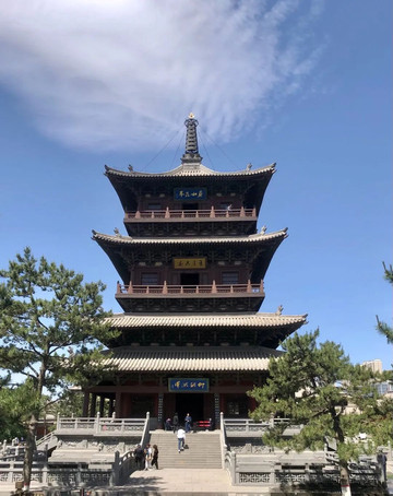 其他建筑多明清和当代重建的。主殿旁边是华严宝塔,可登塔参观,塔廊上可俯瞰大雄宝殿和整个古城。
