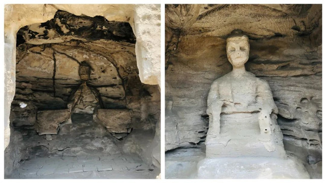风化后的佛窟和菩萨