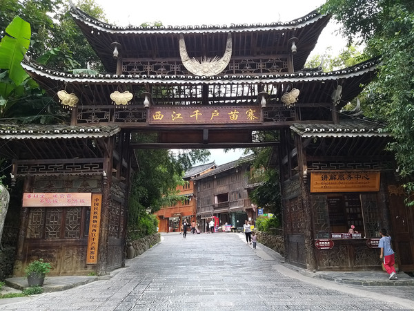 逛过之后下午往西江千村苗寨,大概有2个小时的路程,进苗寨的路着实不太好走,坑坑洼洼,山路崎岖。下午5点左右终于到达,这里门票对退役军人可以免票,终于可以享受一次优惠政策了,高兴。