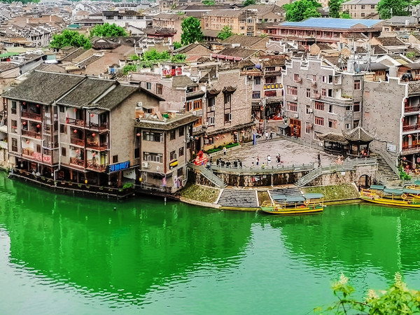 从藏经楼向古镇俯瞰,可以一望舞阳河两岸的建筑群,带有浓厚古风古味的镇景尽收眼底。