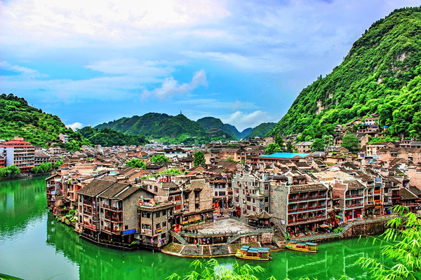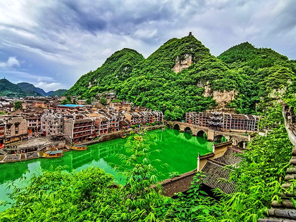 登高青龙洞可以不同角度的拍摄镇远古镇,绿水环绕的古镇尽收眼底。