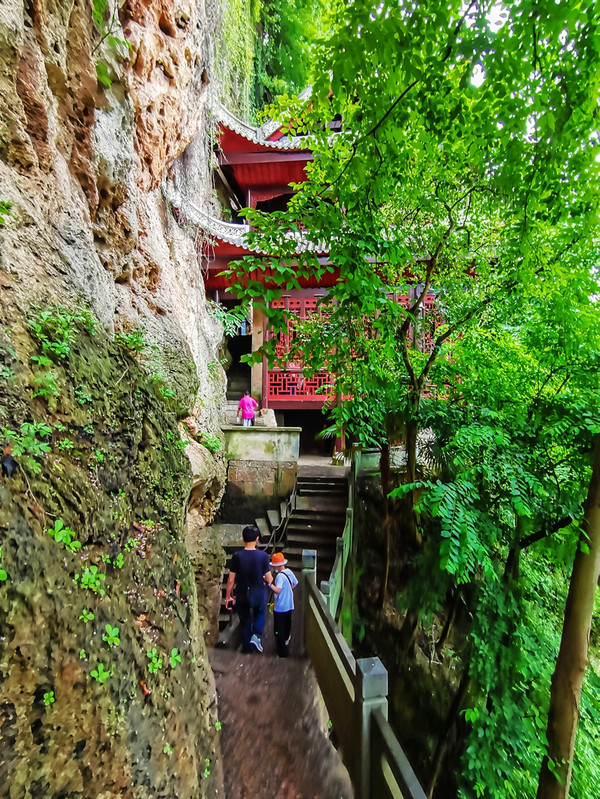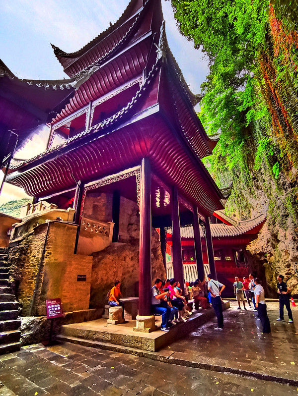 这座殿宇,是为了纪念宋代理学家朱熹而建,因朱熹号紫阳先生故命名紫阳书院。整个殿宇依靠山石和架木为梁,支撑整座建筑的重量。这里应该算是儒家的地盘了,真正是佛道相携,别有意味。
