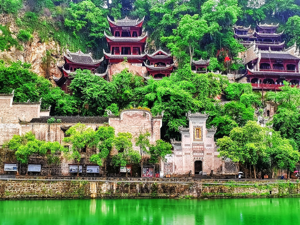 青龙洞是贵州镇远古镇里风水最好的地方,位于镇远古镇城东中河山,是一日游镇远古镇必去的景点。虽然叫青龙洞,但其实是一片道教建筑群,青龙洞共有单体建筑36座,共6个部分组成,依次为祝圣桥、中元禅院、紫阳书院、玉皇阁、万寿宫、香炉岩。组成一个古建筑群,它集儒、道、佛、会馆、桥梁及绎道建筑文化于一身。青龙洞古建筑群很值得去,而且一定要往高处走,登上青龙洞的最高处就能看到整个镇远最好最美的风景。