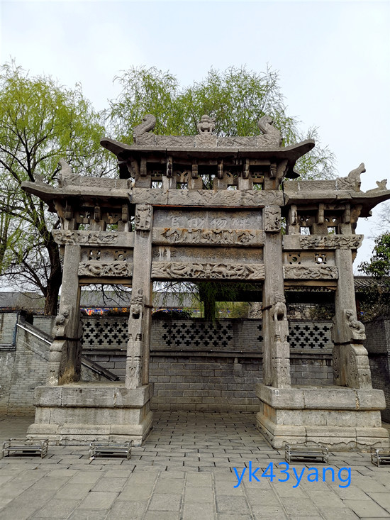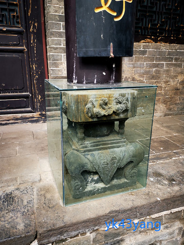 中门门柱的础石石雕极为精美,现用玻璃罩住,应该是一件珍贵的文物。