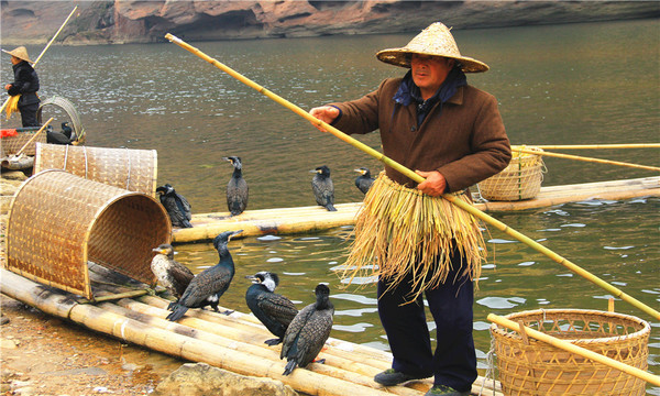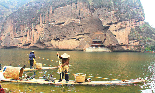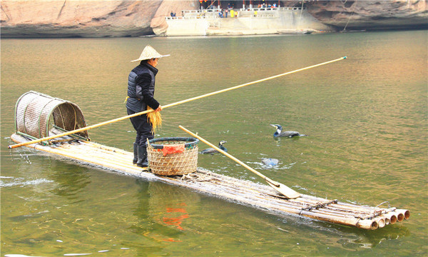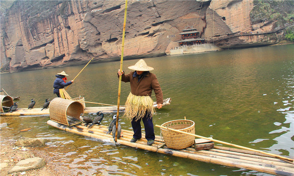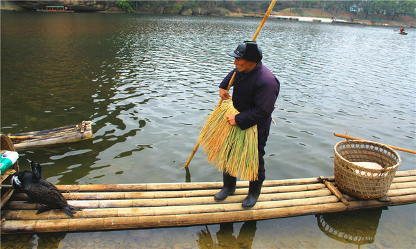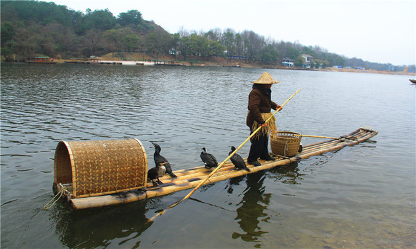 鸬鹚捕鱼是中国劳动人民传承千年的古老技艺,这项技艺在江西省著名的风景名胜区龙虎山中的渔民中也世代相传着。