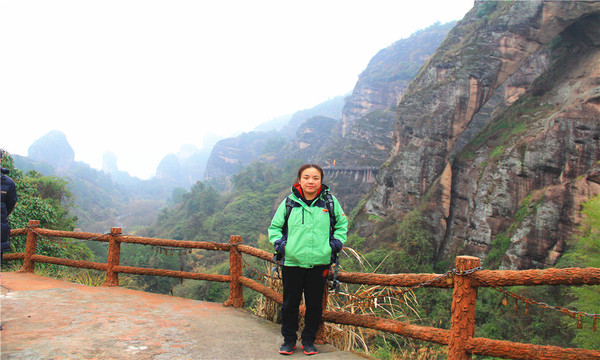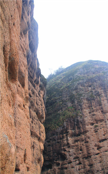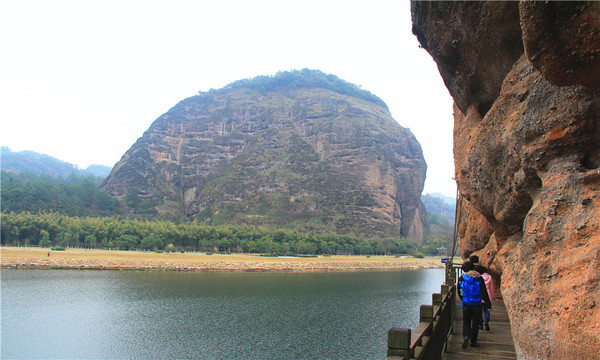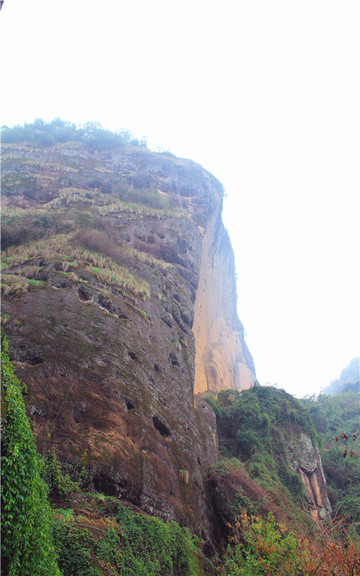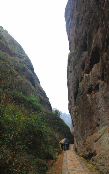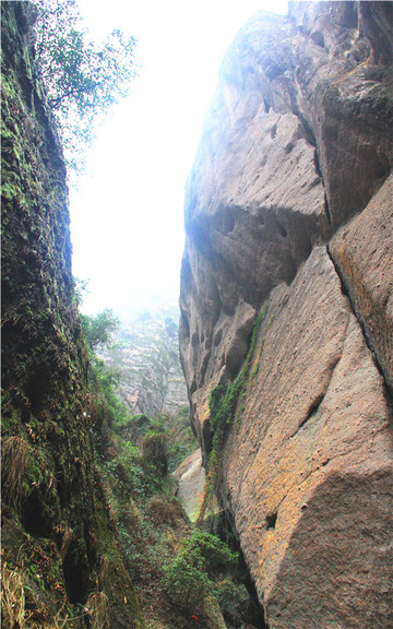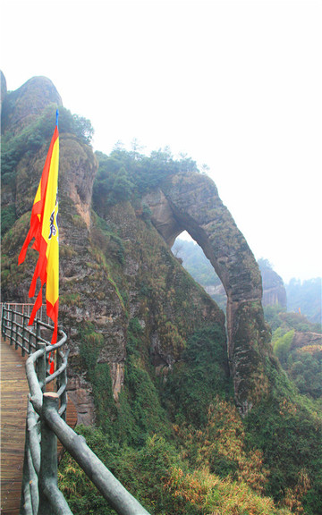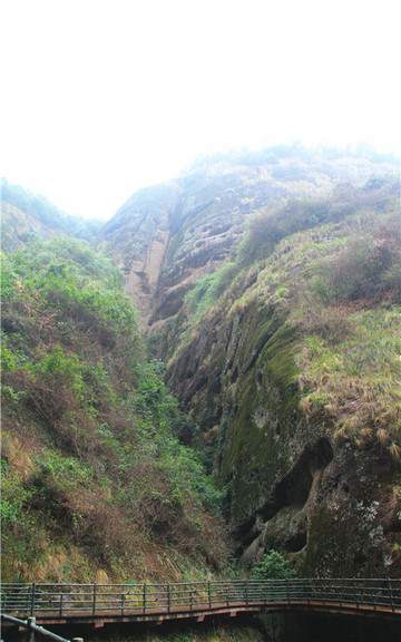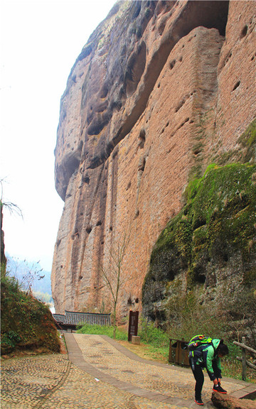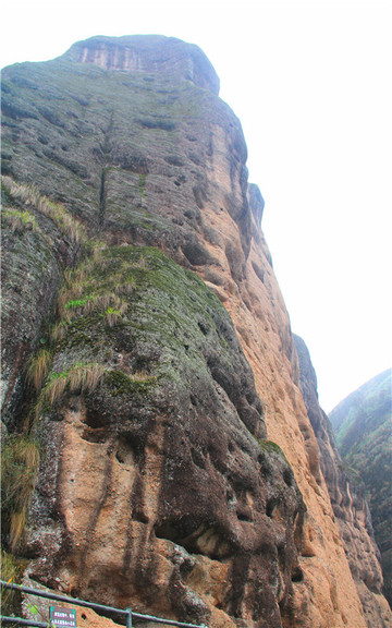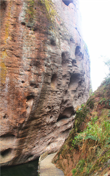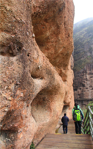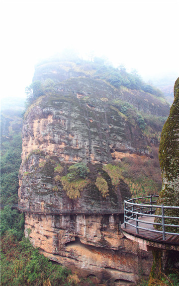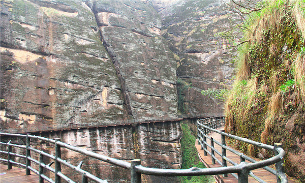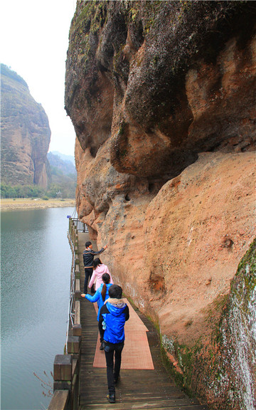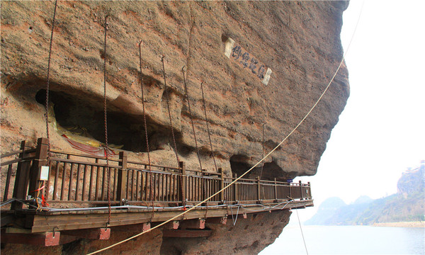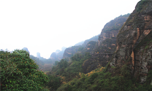 龙虎山的高空栈道实际上并不怎么高,像一条游龙蜿蜒缠绕在悬崖峭壁之上,沿途也比较平缓错落起伏不大。