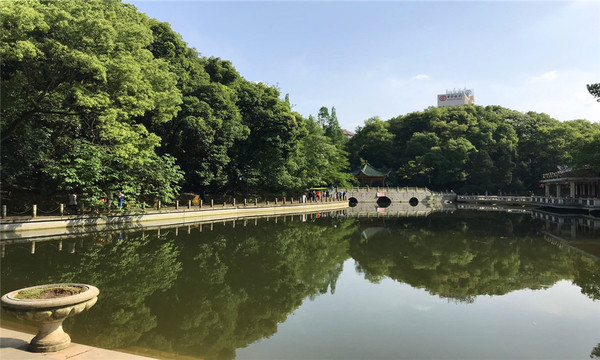 鹰潭公园由市政府投资近2000万元改造的鹰潭公园,文化内涵更深,园林品位更高,