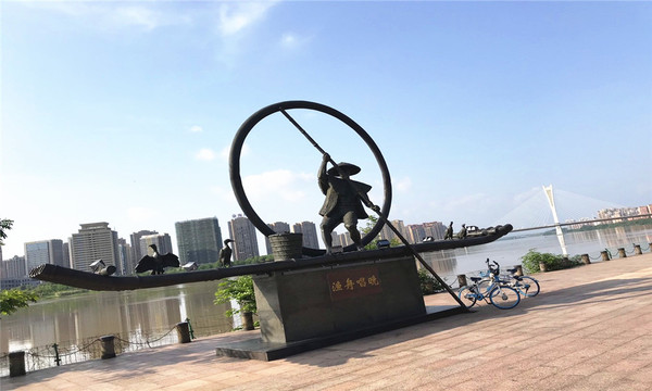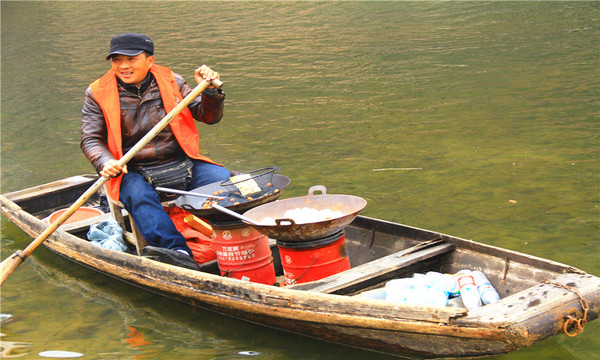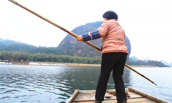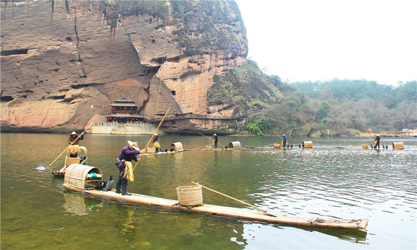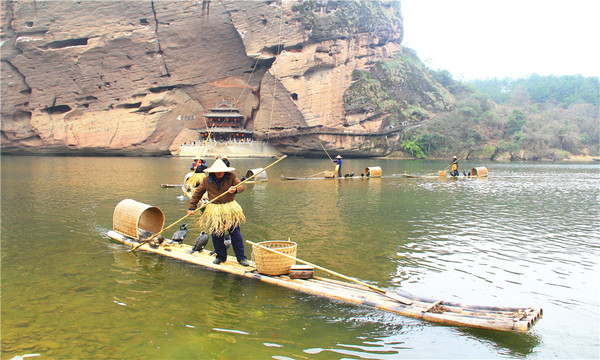 一叶扁舟出没于龙虎山的丹山碧水之中,矫健的鱼鹰、迅捷的鱼儿、黝黑的渔夫、碧绿的江水、两岸的群山,构成了一幅完美动人的和谐画卷。