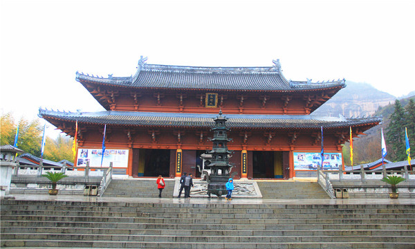 大上清宫有着和北京故宫一样的中轴线布局。中轴线自南向北依次是龙虎门、玉皇殿、后土殿、三清阁。东西两侧为各主殿对应的配殿,它们由连廊及厢房相连。