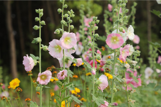 娇嫩的各色鲜花迎风开放
