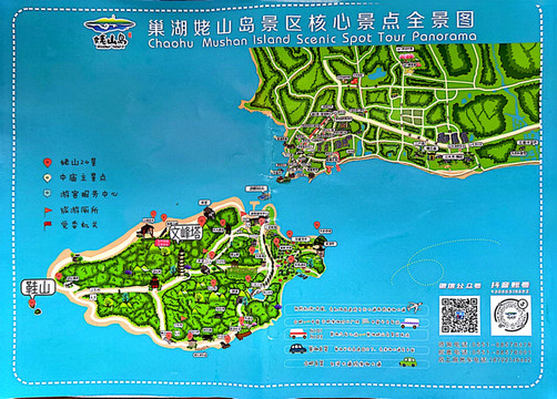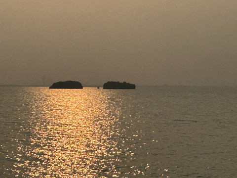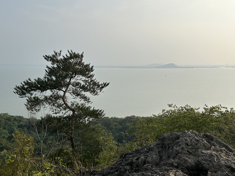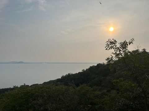 国庆长假我们来到巢湖游玩。巢湖是我国五大淡水湖之一,其核心景区就是姥山岛。在中庙轮渡码头乘坐大船或者快艇即可到达姥山岛。到达后在游客中心乘坐观光车,环岛风景可一览眼底。下车后我们就沿着山路向岛上最高处文峰塔进发。山路都是修得很好的台阶,很容易爬上去,不多会就到了最高处文峰塔。我们上山时匆匆忙忙心无旁骛,就指着登高一望,把湖光山色尽收眼底,遗憾的是节假日和周末文峰塔都不开放,有点扫兴。在下山途中远眺湖面,只见湖水浩浩汤汤,横无际涯,夕阳下的湖面波光粼粼,远处还有叫鞋山的小岛,因为它们露出水面部分就像一双鞋。此情此景我不由想起范仲淹的《岳阳楼记》,其中一段:“至若春和景明,波澜不惊,上下天光,一碧万顷;沙鸥翔集,锦鳞游泳,岸芷汀兰,郁郁青青。而或长烟一空,皓月千里,浮光跃金,静影沉璧;渔歌互答,此乐何极!”范仲淹并未来到洞庭湖,但是凭着他对太湖的了解,以及滕子京给他的图,就写出了洞庭湖的盛景。天下湖泊都是有其共性吧,感觉阳光下的巢湖也是同样的景色。整个姥山岛树木葱茏,郁郁青青,若是在空中俯瞰,应该就像刘禹锡《望洞庭》里的那句“白银盘里一青螺”。在回程路上我还在想人生恐怕就是有种种遗憾,才会有种种惦念,不必事事追求完美,留个念想也不错。