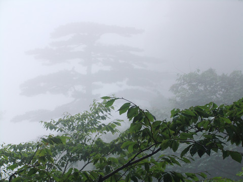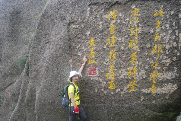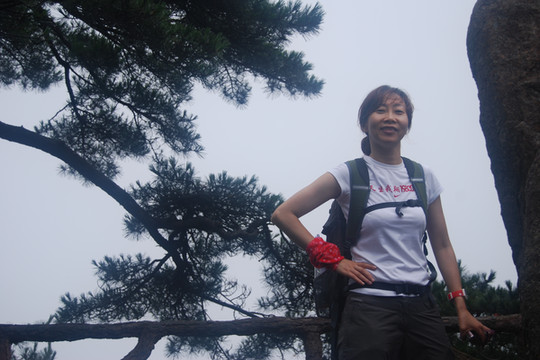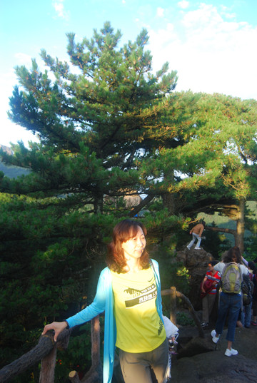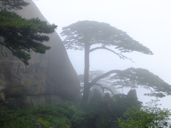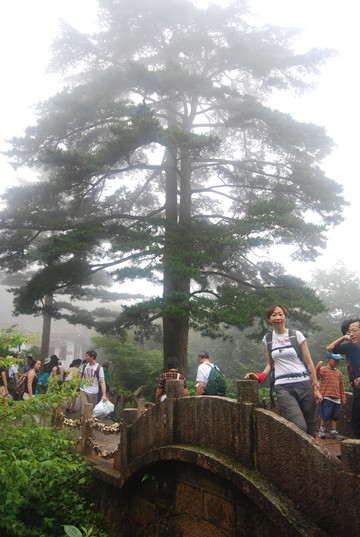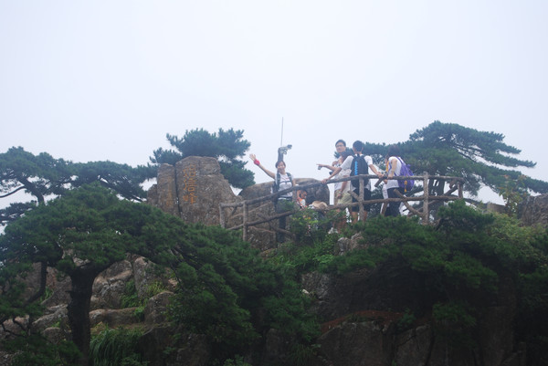 迎客松:“不到迎客松,白跑一场空”,到了迎客松才算是真正到了黄山,既然冒雨爬山,就得留下印迹 。树龄至少已有800年,如图一侧枝桠伸出,就像人伸出臂膀欢迎远道而来的客人。