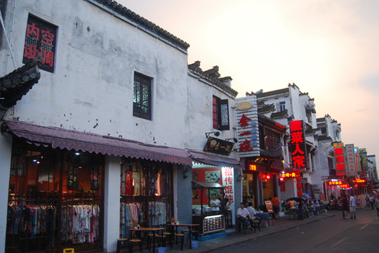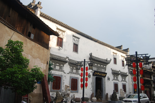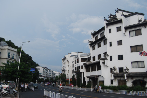 屯溪老街:地处屯溪区中心地段,北面依山,南面傍水,全长1272米,宽5至8米。包括1条直街、3条横街和18条小巷,由不同年代建成的300余幢徽派建筑构成的整个街巷,粉墙黛瓦,马头墙,砖雕 老旧牌匾,鲜明的徽派风格。